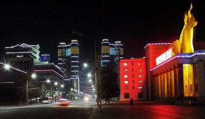 Looking north on Sungri Street from Kim Il Sung Square during an evening stroll