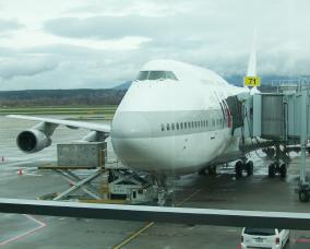 During the flight I mentioned to the flight attendant that I would miss much of my 60th birthday as we cross the International Date Line and later she came by with Champagne for me and the other 2 passengers in the adjacent seats. Since I don't drink alcohol, I gave mine to the girl beside me. Apparently neither of the ladies beside me drank much either and most of the Champagne got thrown away. The flight attendant decided to give me something else and later returned with a cockpit photo signed by herself, the Captain, Co-pilot and Flight Engineer along with small playing cards and a model airplane (later another attendant brought another pack of cards and a tiny plane).