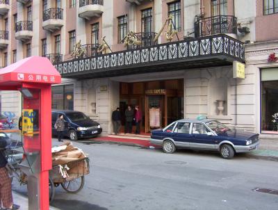 Also I wanted to ensure that I would have accommodation here as the Shanghai Mart where the Trade Show of 13-15 April is nearby. When I went to the desk to make my reservation I was told that there was no room available at that time. It reminded me of my trips to Las Vegas during COMDEX. I asked if they knew of another hotel where I could stay and the arranged a reservation where the price was 140% of the price I'm now paying so I agreed to it to ensure that I would have somewhere to stay. I then went to the Bank of China to get cash for some travellers checks but found that I had to have my passport which was back in the safe in my room. I guess I should carry it with me from now on even though it is likely only to be needed at banks and hotels. When I returned to the hotel I decided that the overcoat was too heavy for carrying around all day so I went back out with only may suit to keep me warm. It was the right choice this time. I walked down towards the consulate area in hopes of finding another hotel but to no avail.