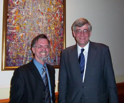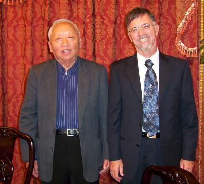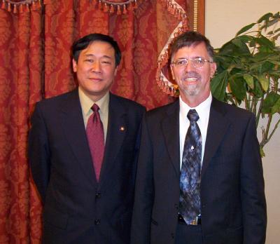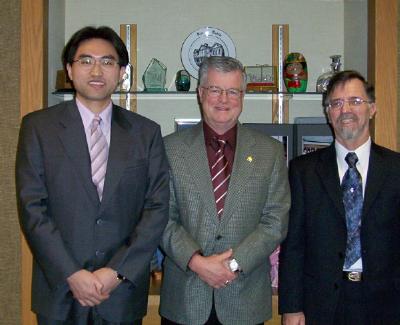 Mr. Christopher Yao and Mr. David Ellsworth meet with Kelowna Mayor Walter Gray (centre) of Kelowna BC, Canada, to consult on the possibility of developing a sister city relationship with a city in China.