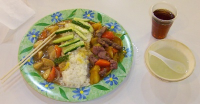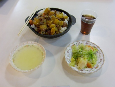 It is a place that provides food that is very palatable to my taste. I will return often. The meal in the picture cost 12¥ (less than C$2). It is curried beef with potatoes and gravy and I like it very much.