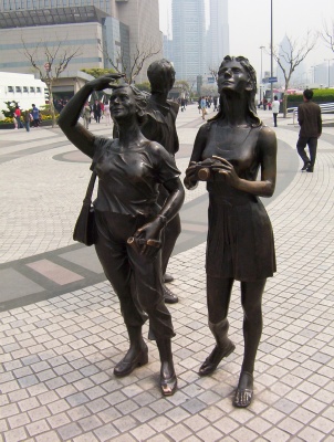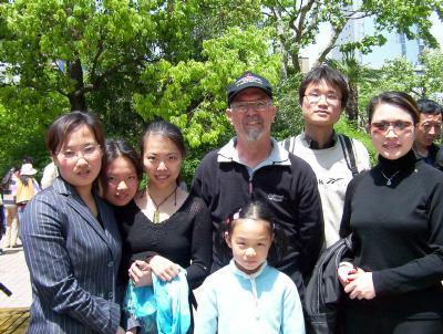 I left the hotel at about 9 AM in pouring rain and went to Nanjing Rd for breakfast at McDonalds (the first meal there) on my way to the English Corner at People's Park. It stopped raining just before I arrived and there were already a few people there, some of whom I have met before. I wiped the rain off a bench to sit as I expected it to be another long day of constant questions and conversation. I remained seated there most of the day except during a few periods of light rain. Again it is a full day of intense interest shown by the people that gather around me. Mr. Fat again came by to insure that I know that he is favourable with my presence there and encourages everyone to listen to me. He brings a few young girls to be introduced to me and insists that they ask questions and listen to my answers. He also come to tell me when he is leaving and encourages me to return next week.