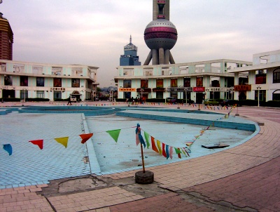 This was a short but effective day of business research. Since it was a very dull rainy day I decided to do some analysis on the occupancy rates in the highrise buildings around Pudong. I was surprised with how much space is unused. It appears to me that the utilization rate in both residential and commercial buildings is somewhat slower than the building rate and the number of buildings now under construction is quite high. I walked from the Oriental Pearl Tower to my hotel, a distance of 7 or 8 Km. I took a little more than 2 hours of walking plus the time to check out the buildings and take pictures.