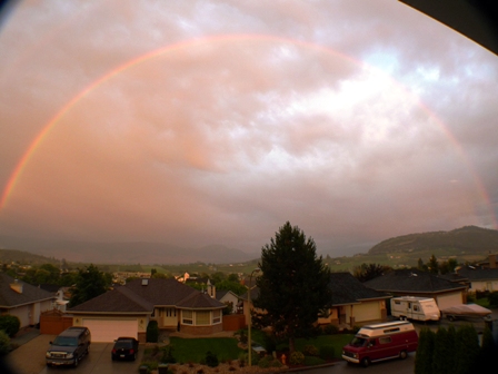 Rainbow at sunset over Glenmore Valley from our front deck.