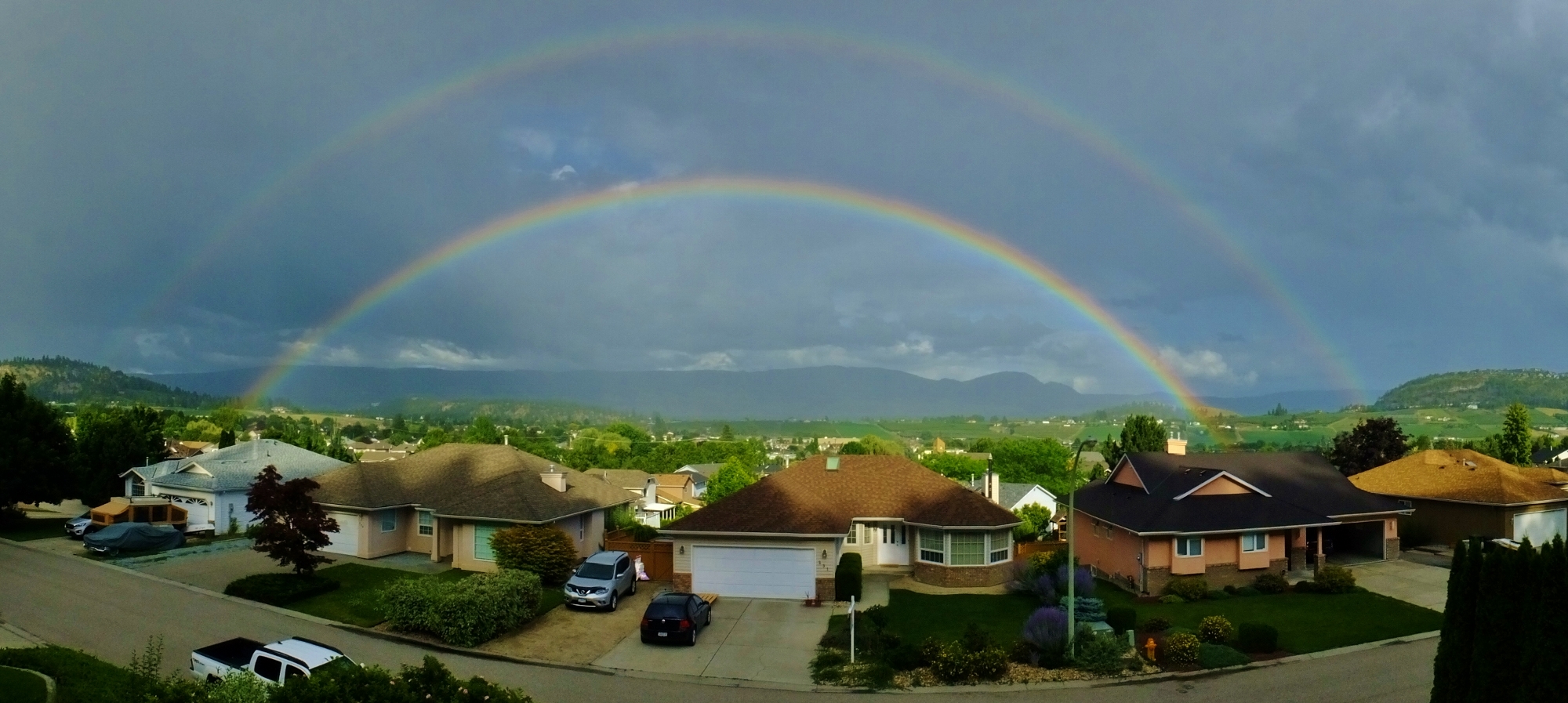 A beautiful double rainbow formed over the valley in front of our house.