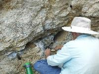 Lindea extracting barite crystals from a vug