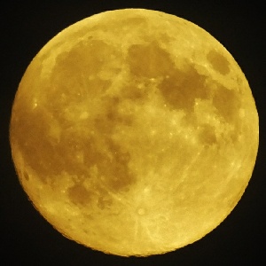Smoke in the air from forest fires adds a yellow hue to the moon