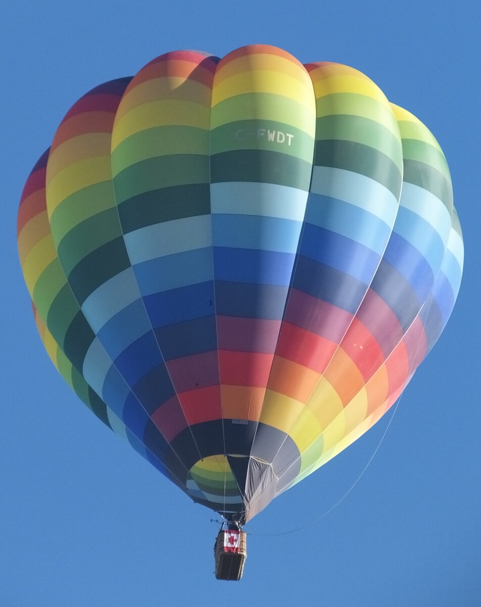 A balloon flies over our house and later lands in Okanagan Lakewhen it encounters unfavorable winds and runs out of fuel. (left)