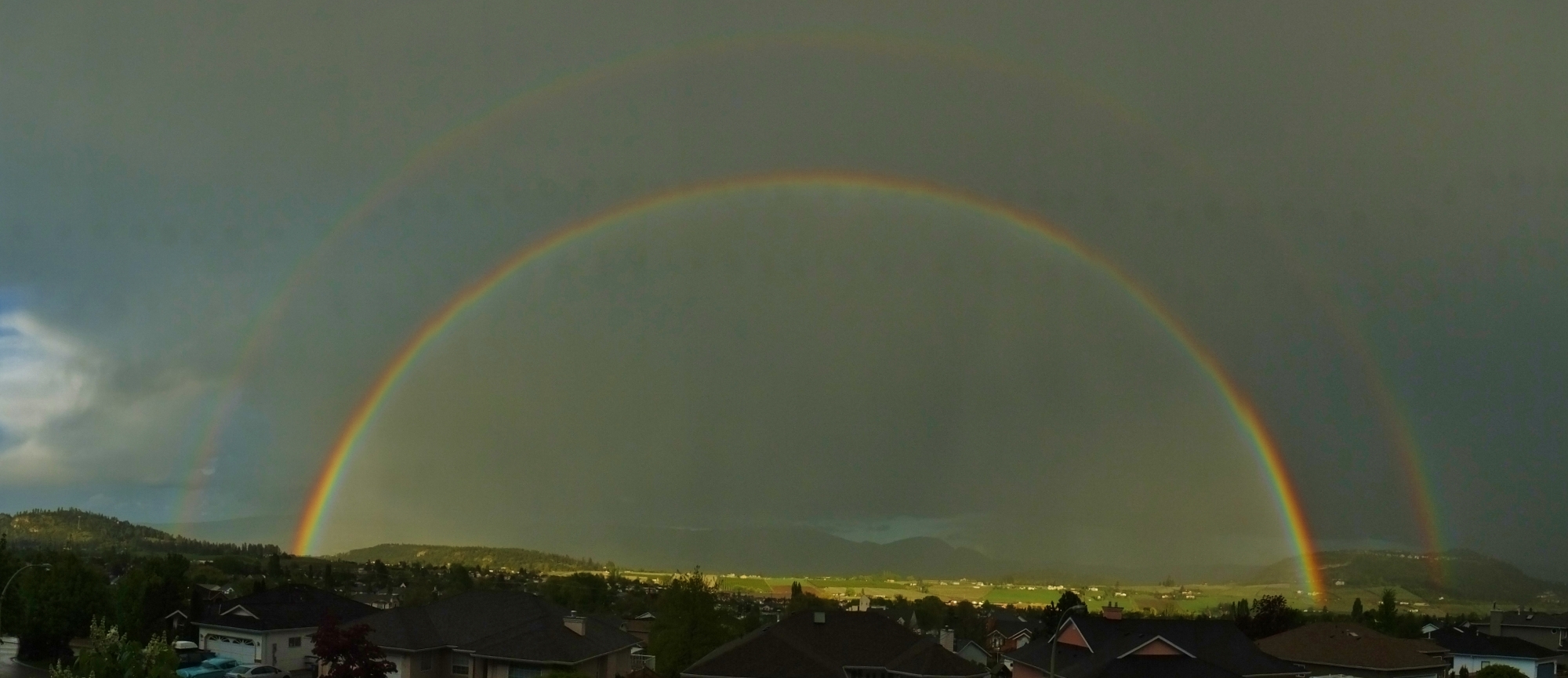 Another complete double rainbow taken 6:22pm 8 July 2016