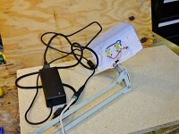 I finally finished installing the LEDs on Lindea's 14" rock saw. The first two attempts failed with blown LEDs. I figure the voltage was a little too high so I got new power supplies and buck converters from China to control the power. While I was at it I also got some toggle switches to make the operation more compact and convenient. I also set up a power system at my bench with voltage displays and a controller for setting up new circuits.