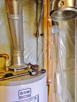 The past 24 hours have been challenging around home. Last night while I was working on Lindea's computer I heard the sound of leaking water. I found that there was a pin hole in the polybutylene pipe going into the hot water tank. There was water all over the furnace, tank and room. most of it was running down the floor drain but a little seeped under the wall into the adjoining room. (Hopefully this isn't indicative of extensive failure of our plumbing system.)