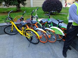 Bicycle rental has changed a lot in the past few years in Nanjing. Large installations of bikes attached to automated holders was the first step. Now the bikes are rented and released through a phone app and may be found most everywhere.