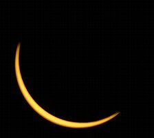 The full moon coloured by the smokey haze from forest fires about two weeks following the eclipse.