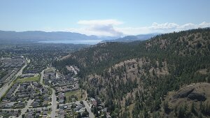 Smoke from the Peachland combined fire as seen from the drone near our home and aerials of farm.